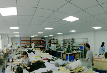 Below are our factory's sample room, offices, production workshop, showroom, and warehouse.