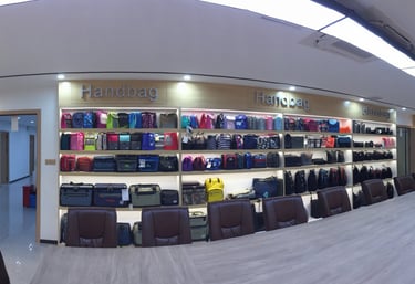 Our showroom displays numerous styles of handbags we've previously crafted, including jewelry bags, jewelry boxes, cosmetic bags, makeup cases, backpacks, shoulder bags, laptop bags, luggage bags, waist bags, yoga bags, seasonal bags, watch boxes, and other accessories.
